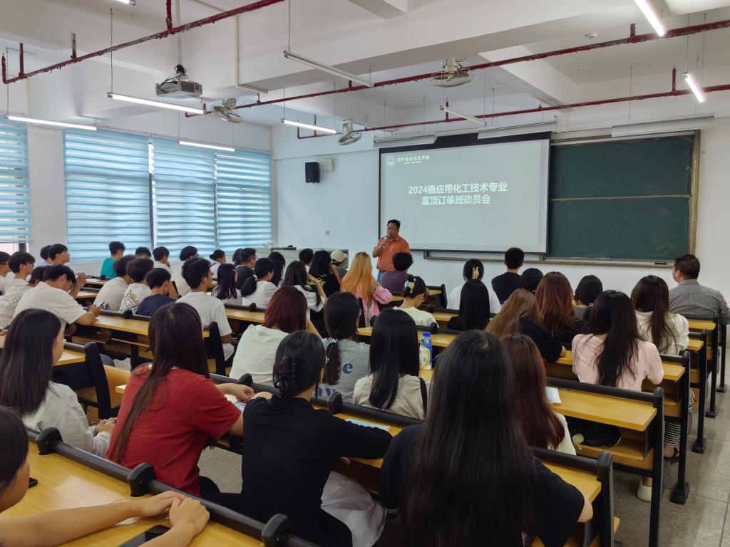 2024年11月5日,化学工程系应用化工技术教研室成功举办了2024级应用化工技术专业富顶订单班动员会,旨在深化产教融合、校企合作,提升人才培养质量,并响应国家“稳就业、保就业”的政策。