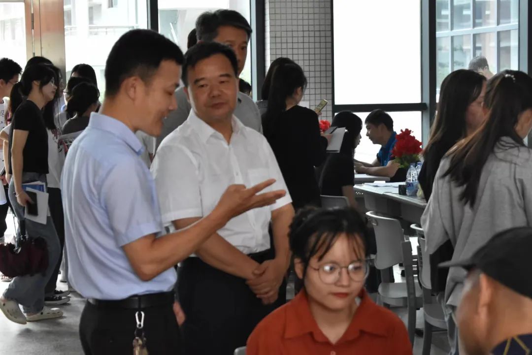 罗恢远到现场与用人单位代表交流,感谢用人单位对学校就业工作的大力支持,了解了人才招聘需求和对学校人才培养的反馈和建议,详细了解学生求职意向和签约状况,并鼓励同学们要好好珍惜机会,积极应聘。据不完全统计,现场有15位学生与企业达成实习就业意向。