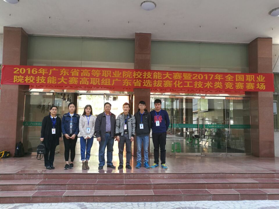 2016年广东省高等职业院校技能大赛暨2017年全国职业院校技能大赛高职组广东省选拔赛“工业分析检验”赛项于2016年12月7日-9日在广州工程技术职业学院举行。我院化学工程系参赛队伍表现不错,获三等奖。(学生:蔡沐霓、朱兰珍;指导老师:林壮森、谢晓龙)