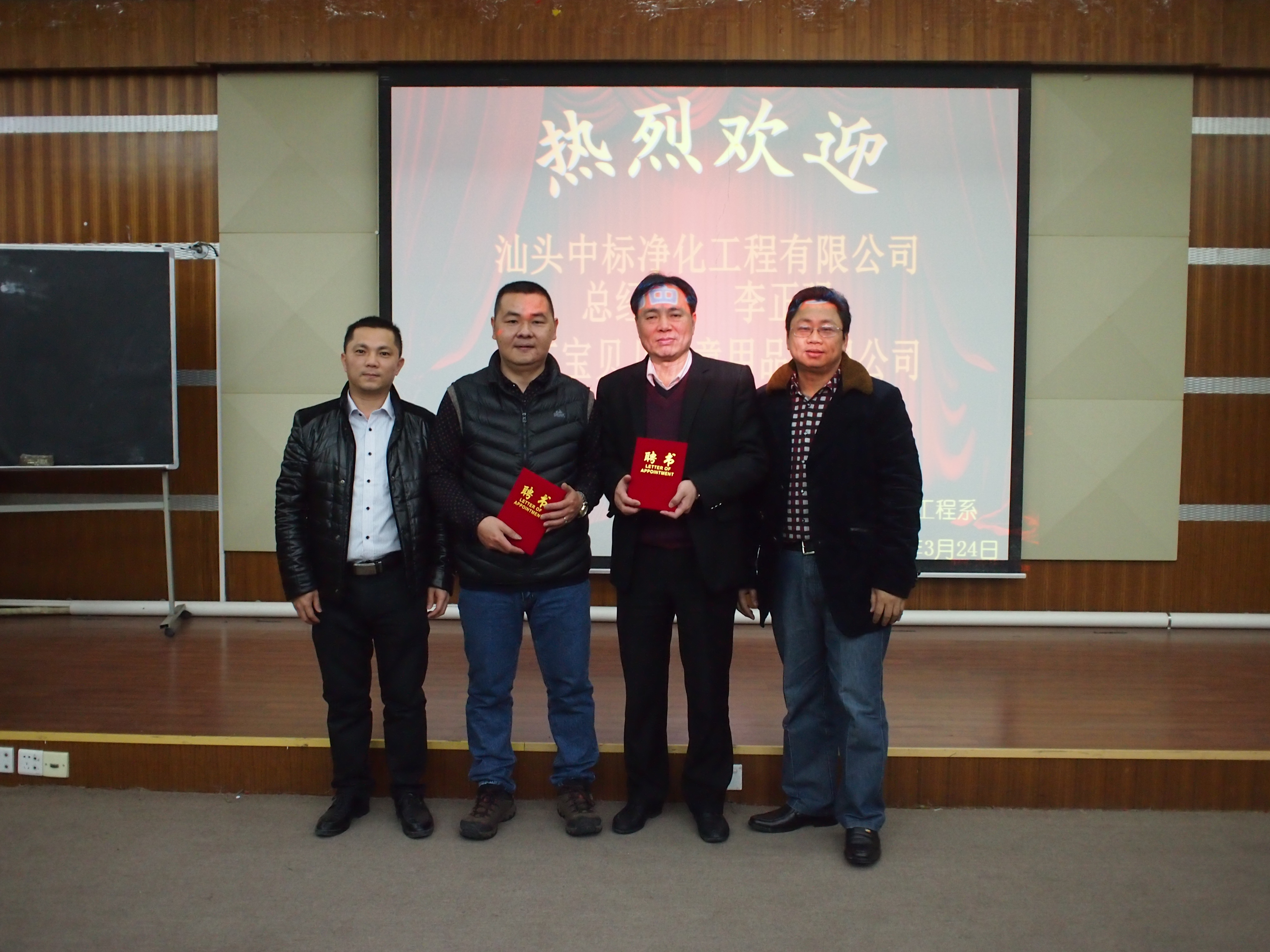 本次学术讲座李总经理还分享了工程实例,内容深入浅出,增加了师生们对净化工程技术在化妆品工艺的应用的了解,使学生们拓宽视野,加深对化妆品行业的认识。最后,化工系江英志主任和江贵波老师为李总经理和夏总监颁发客座教授证书。