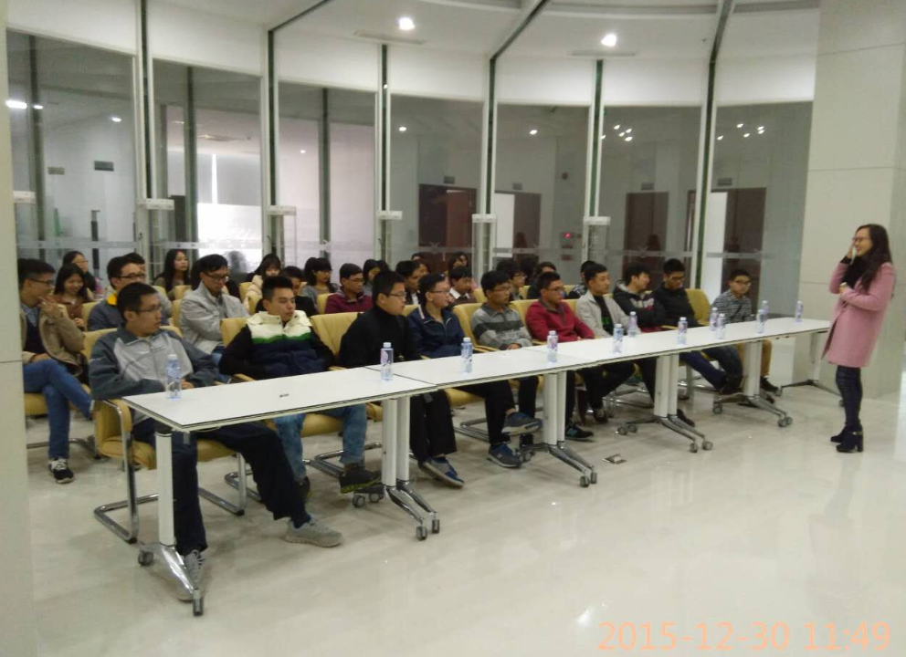 日前,汕头万顺股分有限公司第六事业部的黄博士在化工系,就其部有关手机触控膜的新生产线上的招聘进行了宣讲。为了能实现学生与企业的就业与招工双赢,为了让学生更加了解企业及工作岗位情况,帮助学生就业,我系学生与万顺公司都一致希望学生去企业实地参观并顺便组织面试。化工系江英志主任与王宜民老师于2015年12月30日亲自带领42名2013级学生,参加由万顺股分有限公司的组织的人才招聘会。在招聘会现场,通过企业相关负责人了解到我系2012级留下的7位学生,在工作中勤奋、好学,给用人单位留下了很好的印象。师兄师姐的优秀表现,给到来的师弟师妺们加分不少,最终通过面试万顺股分为我们2013级学生提供了20个左右的工作岗位,进一步巩固了我系与万顺股分的合作关系。