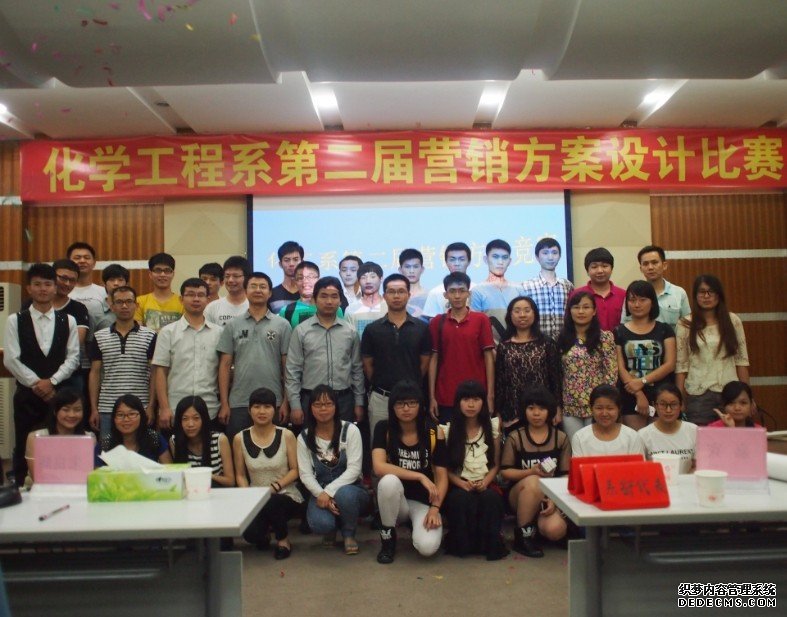 为了进一步丰富培养化工系全体同学的创新意识和创业精神, 2014年5月18日晚,我系在教学楼AT21举办化学工程系第二届营销方案设计大赛。本次比赛邀请了朱良辉老师、张利雄老师、孙警老师、黄淯斌老师作为此次活动的评委,系领导老师赖少坤副书记、刘淑媛老师、林桂生老师、谢晓龙老师、王宜民老师出席了本次比赛并为参赛选手颁奖。院团委会代表、社联代表、广播站代表、各协会代表、各系部代表以及六队参赛选手也参加了活动。本次比赛由梁南峰、陈馥芝主持。
