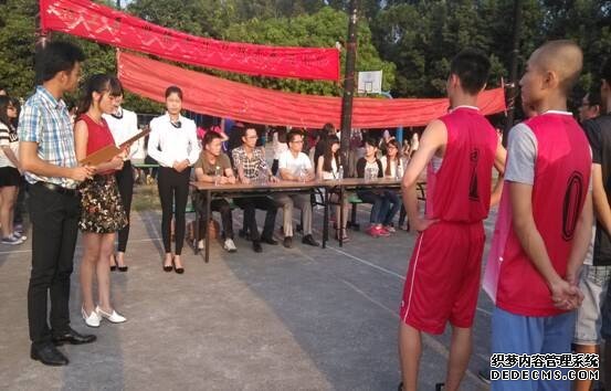 首先,赖少坤副书记为本次“迎新杯班级篮球赛”致开幕词。他表示举办这次球赛可以丰富大学生的课余生活,提高大学生的综合素质,营造良好的校园文化氛围。与此同时,他鼓励参赛队员以顽强拼搏的精神,赛出竞技水平、赛出团结友谊。最后赖书记预祝各参赛队伍能取得最佳的成绩。为了严格遵守比赛规则,公正裁决,开幕式上由裁判员代表进行宣誓,保证比赛的公平公开性。紧接着由体育部副部长陈耀城代表全体球员发表讲话,表示各代表队会秉承“友谊第一,比赛第二”的体育精神,自觉遵守比赛规则,以顽强拼搏的精神完成每场比赛。